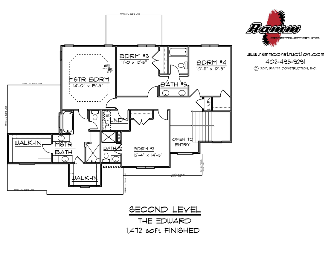 - Second level sq ft 1280-1490, 4 bedrooms, 3 baths